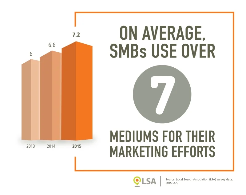 Small businesses in the United States, on average, now use more than seven marketing and advertising methods to promote themselves. That number has steadily been growing, according to Local Search Association (LSA) survey data. It also stands as a kind of indicator of the increasing complexity of digital marketing.