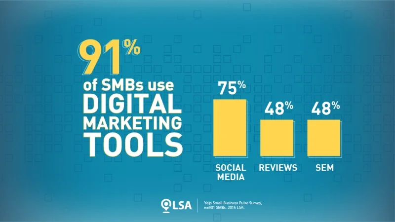 While much of the SMB marketing narrative has been around lacking participation in digital marketing, a new Yelp study provides stats to the contrary. According to Yelp's recent survey of 900 SMBs, 91% use digital marketing tools.