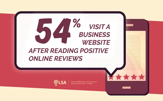 According to a new study, 54% of consumers visit a business website after reading positive reviews. This was the most common second step after reading these reviews, followed by visiting the business (19%), searching for more reviews about the business (17%), contacting the business (7%) and continuing to look for other businesses (3%).