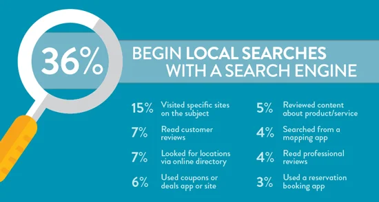 While local searches commonly start with a search engine, it isn't as large of a portion that some might expect. According to a recent report from YP, only 36% of consumers begin a local search with a search engine and the rest of consumers start on a fragmented array of choices.