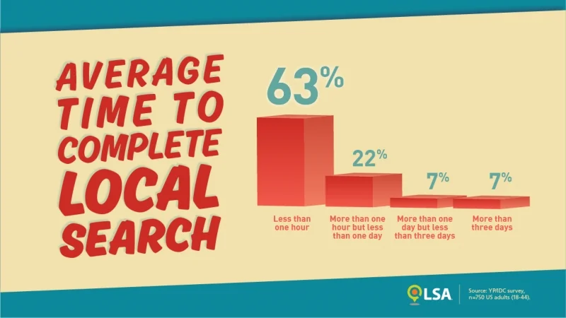 A new YP survey found that most search tasks were initiated and completed by respondents relatively quickly — most in under an hour. According to the report 63% completed a local search within one hour.