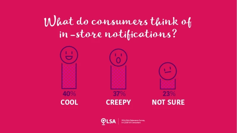 That's according to a 2016 study from RichRelevance, which explored which mobile and location-based marketing innovations consumers found "creepy or cool." The study discovered that consumers have mixed feelings about proximity marketing and in-store location awareness. While consumers now expect to use their mobile phones as part of the in-store experience, they are most open to mobile and digital innovations that allow them to choose when and how to engage.