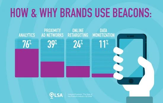 Specifically, 76% who have deployed beacons are using them for analytics, 39% are leveraging the data for proximity ad networks, 24% are using the data to improve online retargeting and 11% for data monetization.